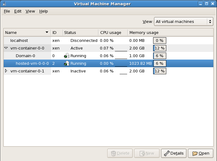 Virt-manager is a program produced by RedHat that is a desktop user interface for managing virtual machines. This section describes how to use some of virt-manager's features to control and monitor VMs on a Rocks cluster.